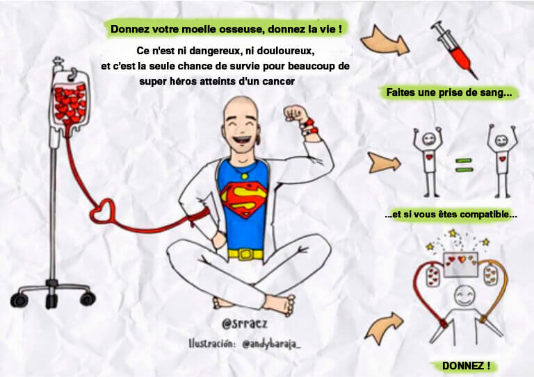 Comme exemple de résilience, je vous encourage à faire une recherche sur le cas de Pablo Raéz, un garçon de Malaga qui a surmonté l’adversité sans cesser d’être conscient de ce à quoi il se confrontait. Il a été capable de servir d’inspiration à des milliers de personnes qui se sont motivées pour donner leur moelle osseuse grâce à sa campagne “Reto un millón” (Défi un million), à laquelle on ajoute un Allez Raéz !