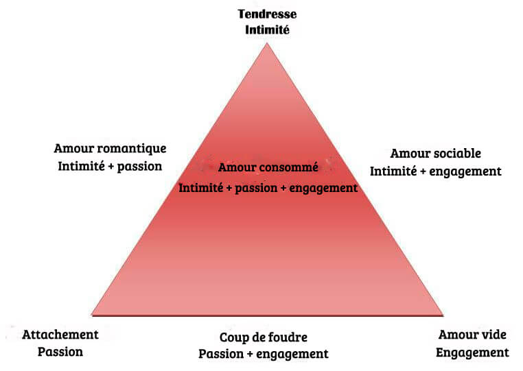 Il existe une théorie psychologique puissante qui explique l’amour, sa genèse, ses composants et ses diverses formes : la théorie triangulaire de l’amour. Dans sont livre Le triangle de l’amour : Intimité, Passion et Engagement, Robert Sternberg affirme que pour que le véritable amour existe, il faut trois composants :